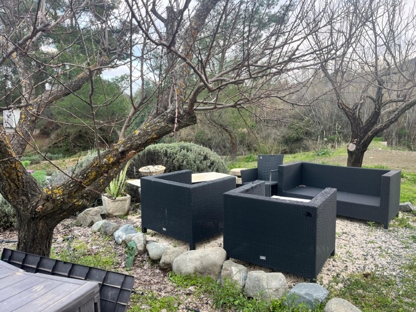 The land itself is fertile and productive, featuring established olive and almond trees, along