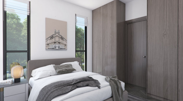 Master bedroom with ensuite shower (except in the penthouse) in addition to family bathroom