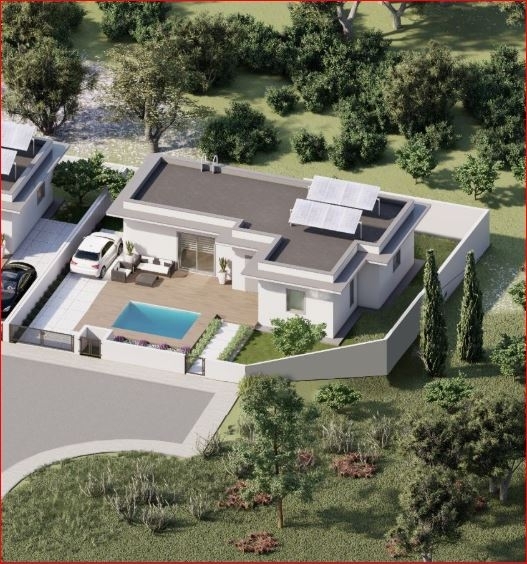 The bungalow is attractively designed and unique in its own way. It features a living and dining area, an open-plan kitchen, 2 well-sized bedrooms, and 2 bathrooms. In the spacious garden, there is a cosy gazebo - a comfortable and inviting retreat, and a private swimming pool.