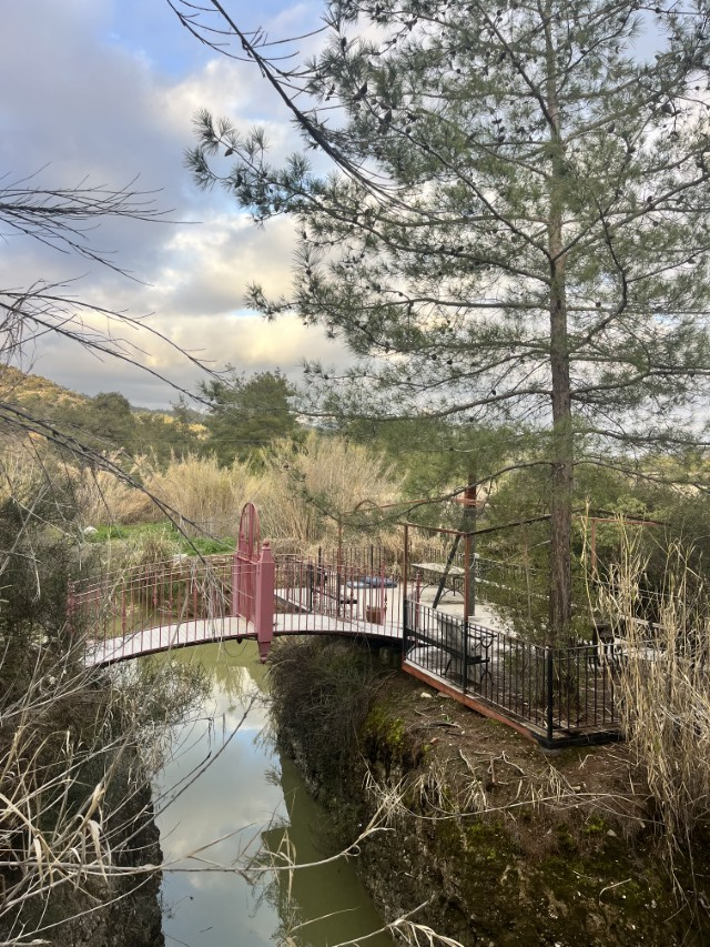 The land includes olive trees, almond trees, pear, orange, and fig trees.