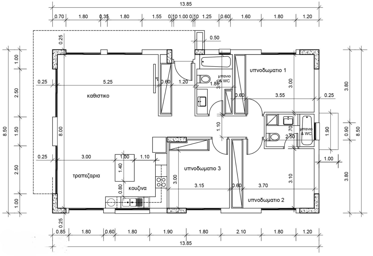 Covered and uncovered verandas: 30 sqm